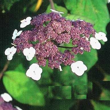 Hydrangea aspera 'Macrophylla', Fluweelhortensia. Blad: donkergroen, groen, bladverliezend, eirond, groot, breed, getand, lichtbehaard, fluweelachtig behaard aan onderkant, langwerpig. Bloem: Lila/witte steriele lokbloemen (buitenbloem), diep lila/paarse fertiele bloemen (binnenbloem). Standplaats: Zon/Half schaduw, schaduw, gefilterd zonlicht, geen volle zon. Te veel zon en wind kan zorgen voor bladverbranding. Bloeitijd : juli, augustus. Hoogte : 1.00-3.00 m. Grondsoort : humus, neutraal, bij voorkeur zure grond en licht kalkrijk. Grondvocht : matig. Groep : (sier)heesters. Gebruik : groep, solitair, parken/tuinen, (half)schaduwtuinen, onderbeplanting, border. Vorm : opgaand, hoog. Wind: windbestendig maar niet teveel in uitdrogende wind.